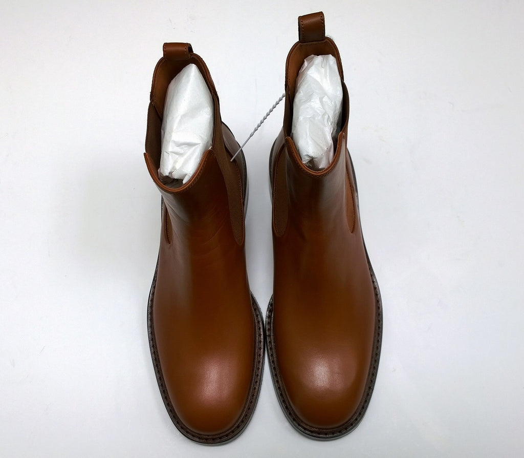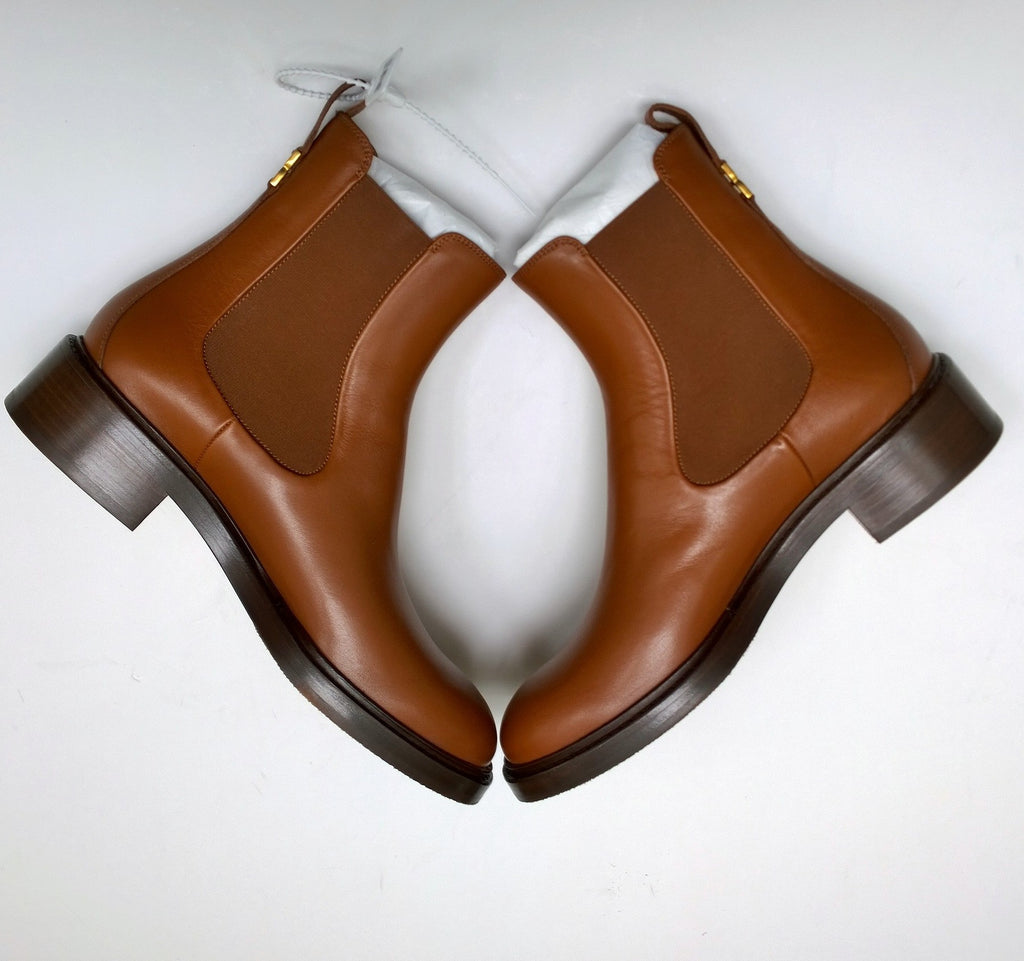 Chloé Marcie ankle boots come in a warm clay brown leather with smooth and flat leather soles and small wood block heel. Signature Marcie metal detail on the heel pull. New in box with dust bag. These neutral color boots work great as a transitional seasons piece with both trousers and skirts.