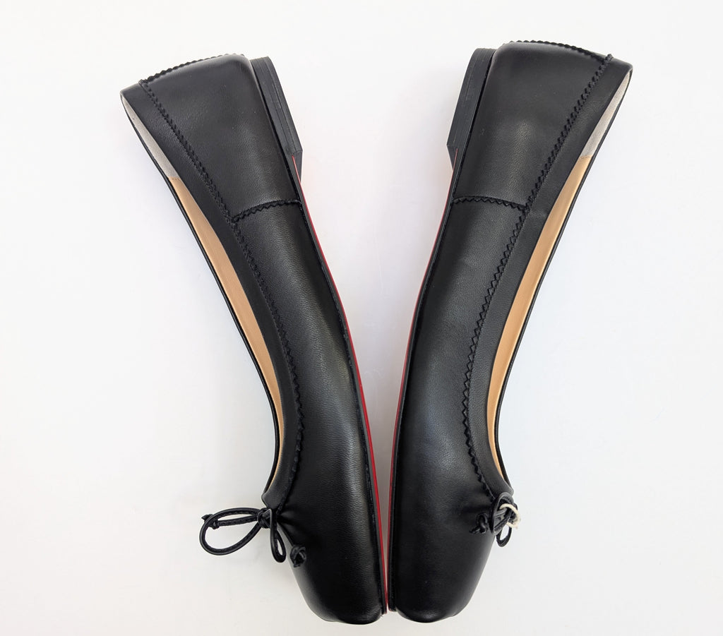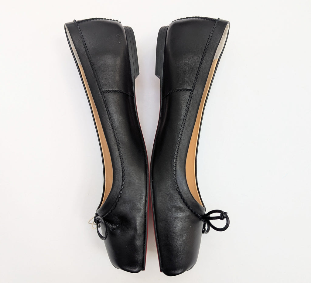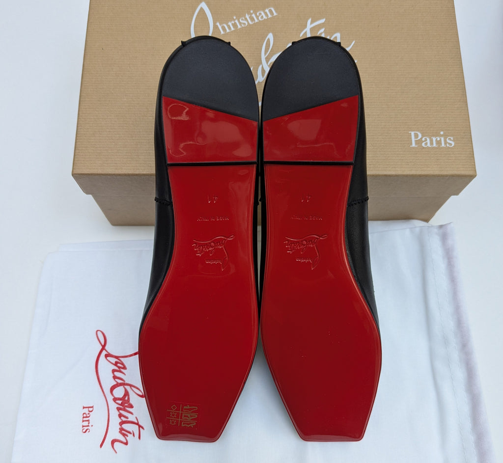 From the ode to ballerinas around the world, Christian Louboutin's Mamadrague flats come with the shaped pointe shoe toe on pancake flats. Full rubber sole in red. The shoes come in original shoe box with dust bag. Copy of original receipt upon request.