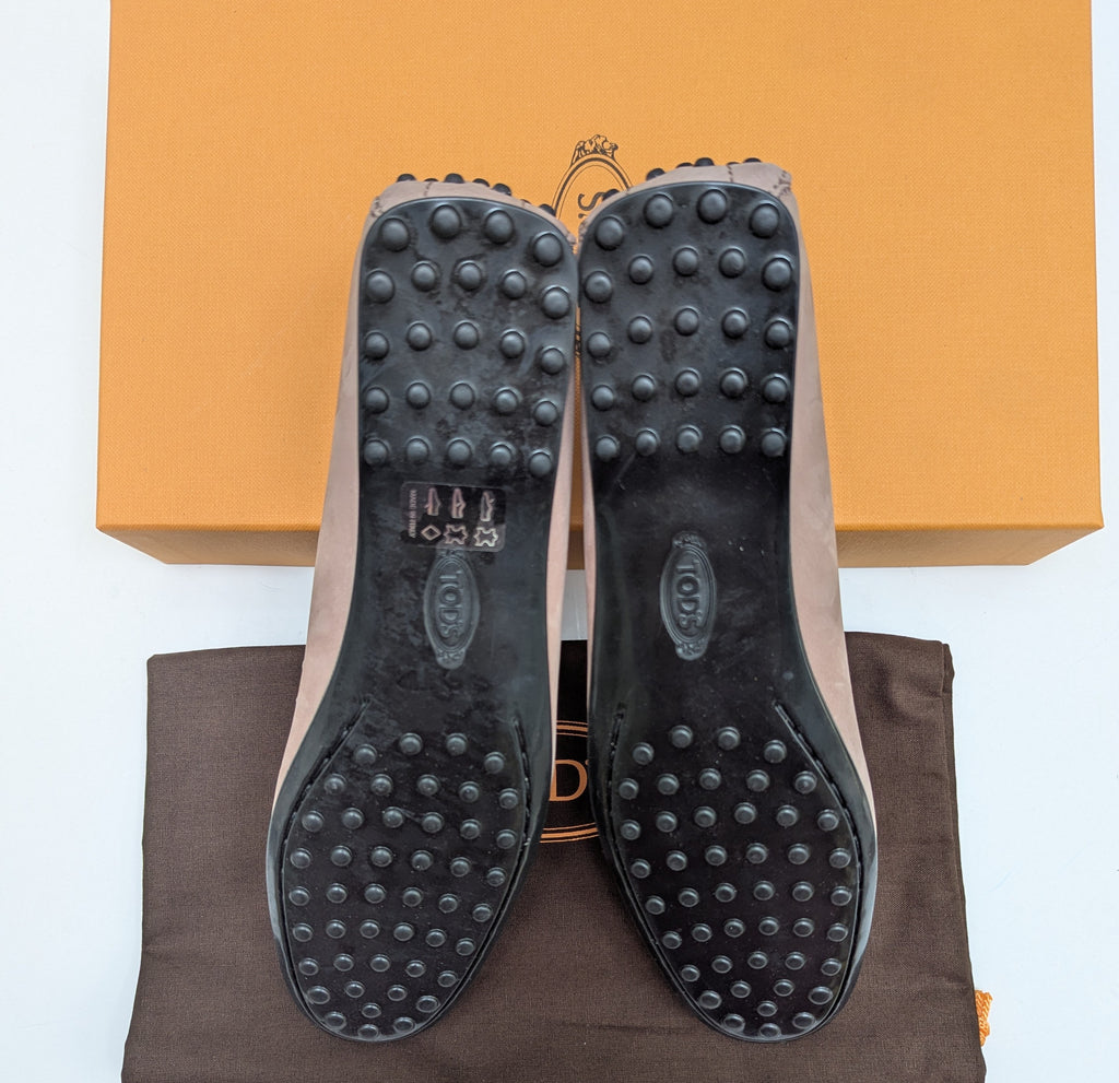 • Tod's Dusty Pink Suede Loafers with Rubber Soles Gommino Flats New in Box Shoes